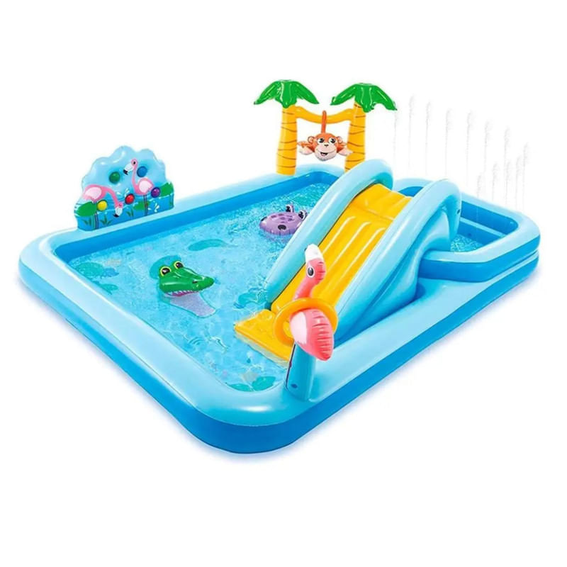 Con el parque infantil Louisiana INTEX, sus hijos tendrán la oportunidad de deslizarse por el tobogán y aterrizar en la piscina.