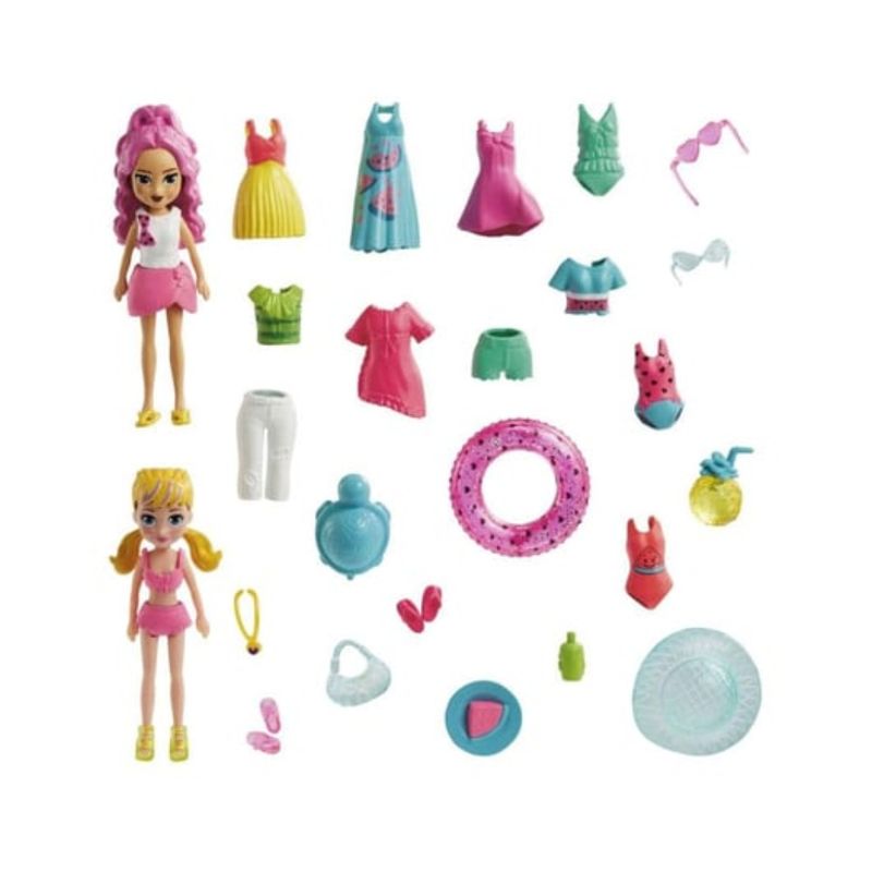 Los niños pueden mostrar su estilo con los paquetes de moda de Polly Pocket llenos de ropa y accesorios para muñecas. Este conjunto con temática de estrella del pop incluye dos muñecas y 25 piezas de moda: ¡dos accesorios brillan en la oscuridad!