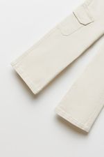 Pantalón cargo denim con bolsillos delanteros. Cierre con botón y cremallera