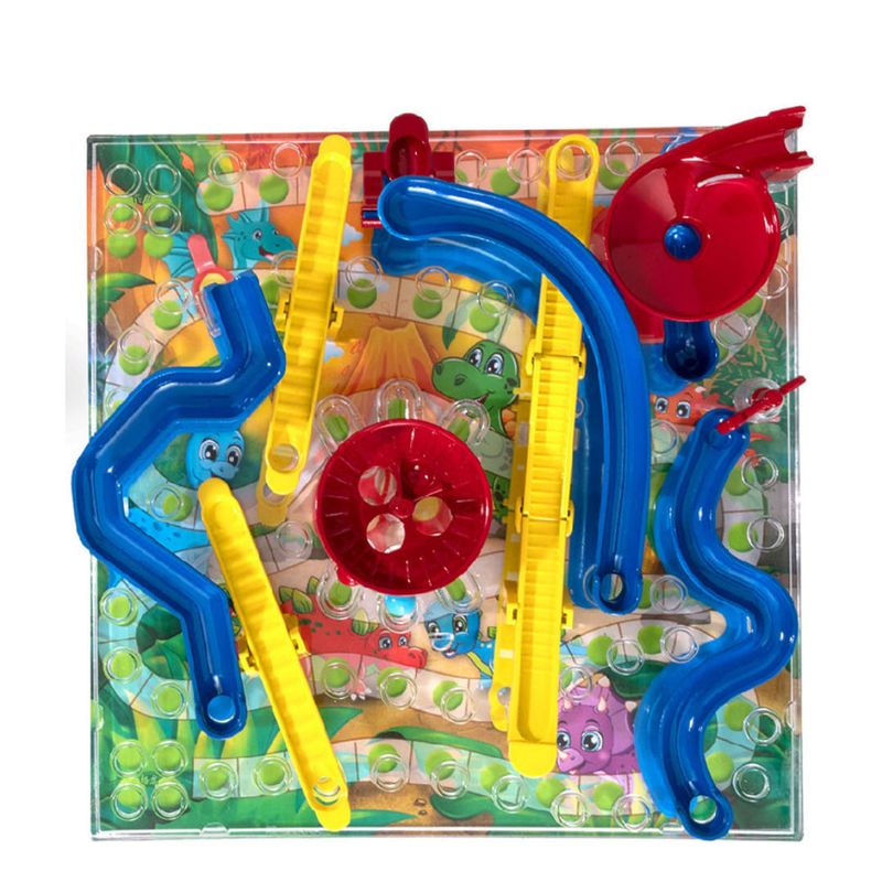 Configure su tablero con las piezas 3D proporcionadas y cada jugador se turna para tirar los dados y moverse la cantidad de pasos alrededor del tablero que muestra el dado. Si aterrizas en un tobogán, debes bajar hasta el final del tobogán; sin embargo, si aterrizas en una escalera, puedes subir hasta la cima. ¡Una aventura de dinosaurios para correr hasta el final! Apto para mayores de 3 años. Tamaño del producto: