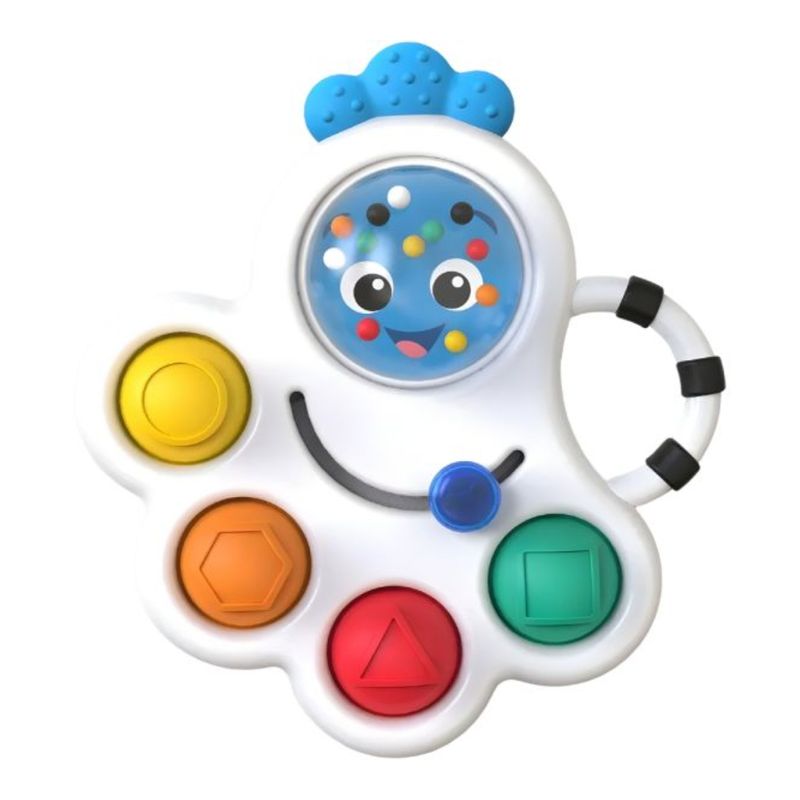 El sonajero mordedor Baby Einstein Opus’s Shape Pops es un versátil juguete diseñado para estimular los sentidos del bebé de 3 a 36 meses. Con un diseño 3 en 1, este juguete multifuncional actúa como mordedor, sonajero y juguete sensorial, ofreciendo una experiencia de juego completa. El diseño divertido y colorido presenta a Opus the Octopus, un personaje popular de los libros y videos educativos de Baby Einstein en YouTube. Las vibrantes y suaves protuberancias de burbujas no solo son atractivas visualmente, sino que también emiten un suave sonido pop al ser tocadas, proporcionando una experiencia sensorial placentera para el bebé.